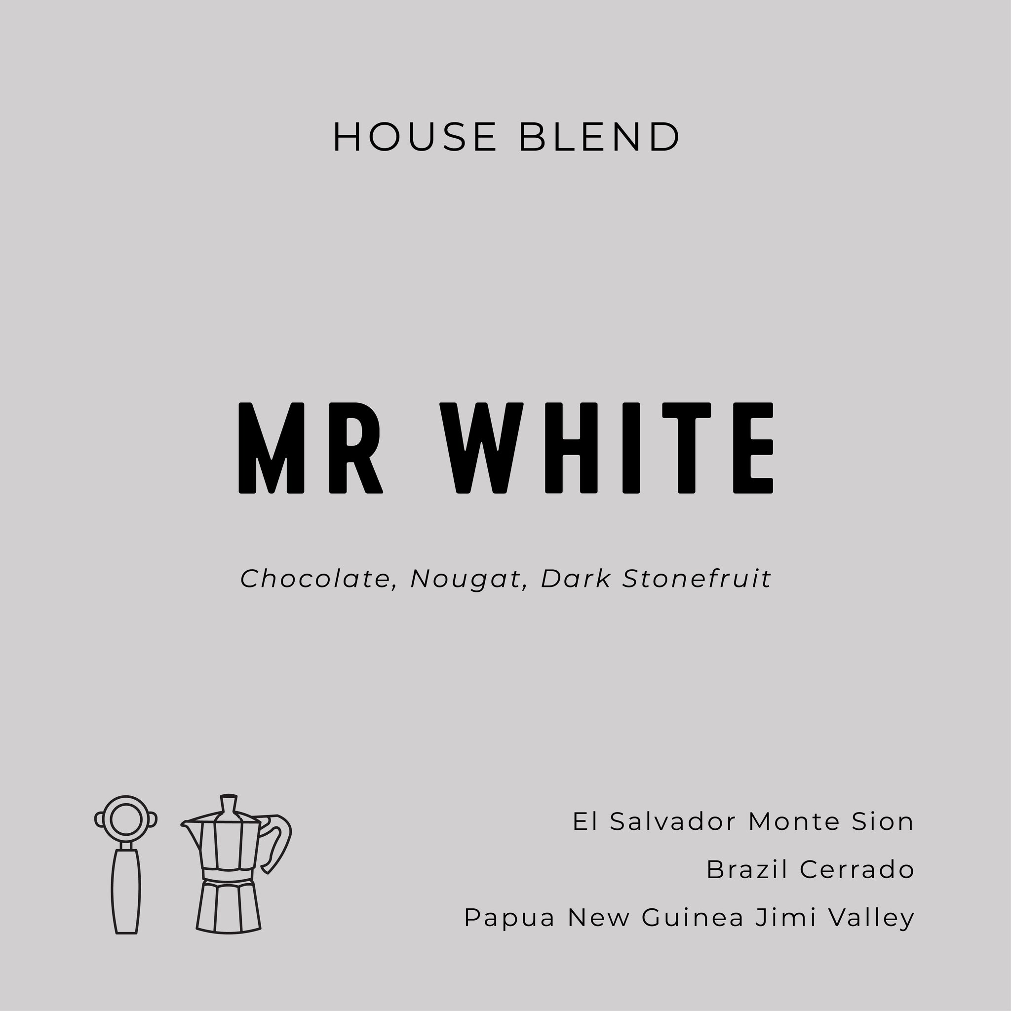 Mr White was originally developed to be served as espresso based milk drinks but it has recently been redesigned to be more versatile and is also enjoyable as an espresso or long black. The three origins that make up this blend are: