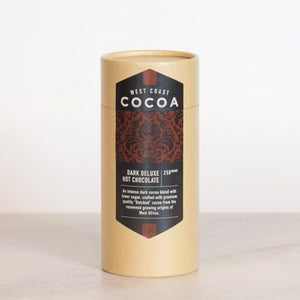 West Coast Cocoa Dark Deluxe is an intense dark hot chocolate with lower sugar, crafted with premium quality ‘Dutched’ cocoa sourced from the renowned cacao growing regions of West Africa.