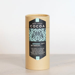 West Coast Cocoa Peppermint is a rich complex hot chocolate with luxurious peppermint, crafted with premium quality ‘Dutched’ cocoa sourced from the renowned cacao growing regions of West Africa.