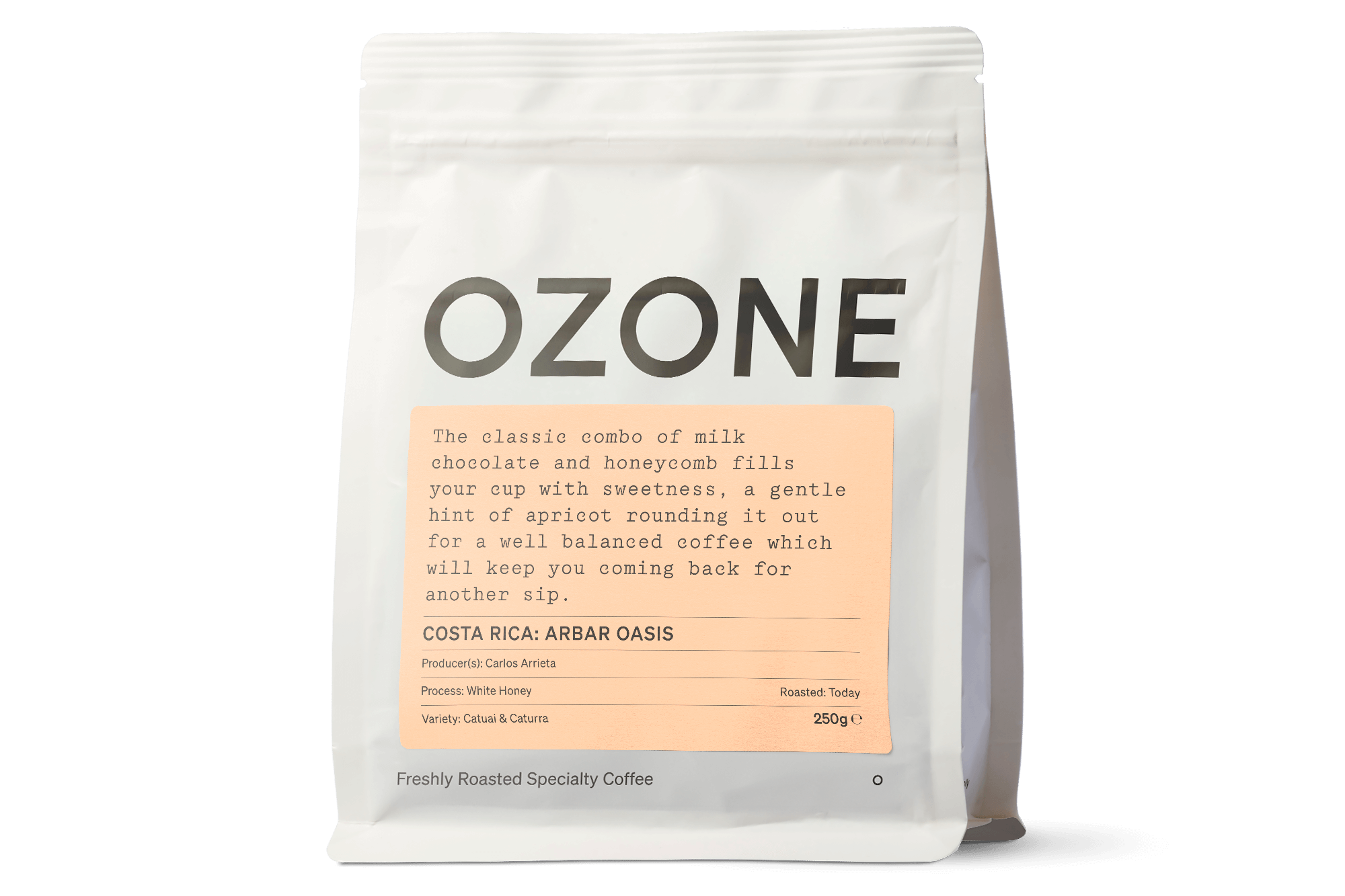 The coffee has been processed using the white honey method, a technique Costa Rica pioneered following water shortages caused by a 2008 earthquake. In honey processing, the outer skin and fruit pulp are removed from the seed, but varying amounts of the sticky mucilage (nicknamed 'honey' for its texture) are left to dry on the bean. The colour in the name refers to how much of this mucilage remains: black honey retains the most, whilst white honey removes almost all of it. Sitting closest to a fully washed coffee on the spectrum, white honey produces a clean, balanced cup with subtle sweetness and delicate acidity. It requires precision and care to execute well, but uses significantly less water than traditional washing, making it ideally suited to the West Valley where water is a precious resource.