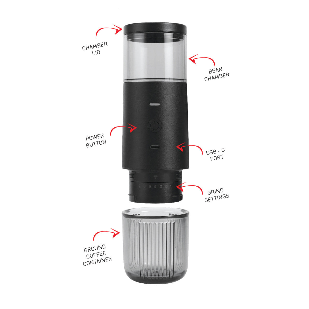 Compact and cordless, it features a powerful lithium battery, rechargeable via USB-C, for convenient use anytime, anywhere. With a 30g bean capacity, it’s perfect for espresso or plunger coffee lovers who value freshness and quality wherever they brew.