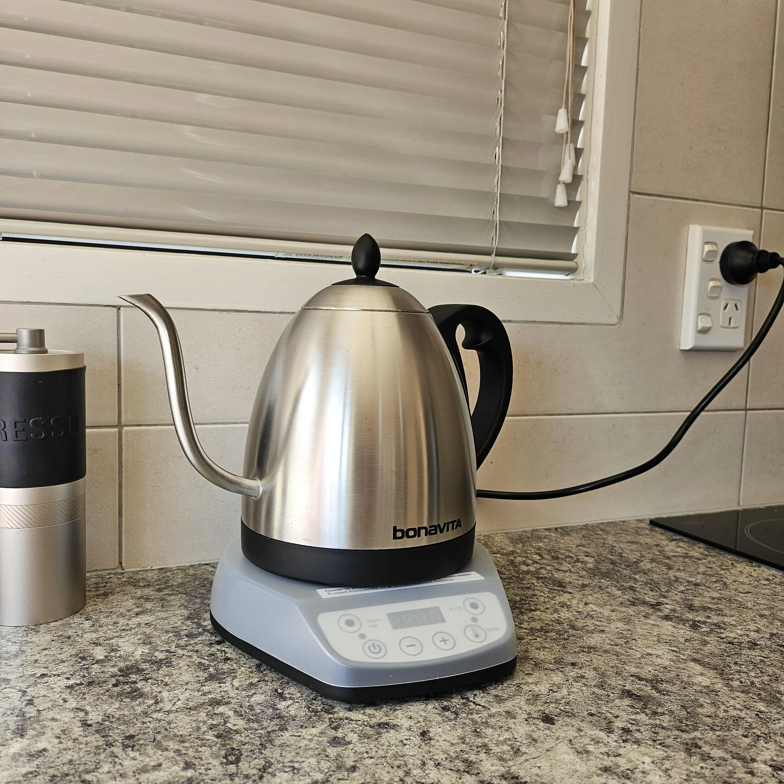The Bonavita Variable Temp Gooseneck Kettle 1.0L made from stainless steel and BPA free plastic is matched with a 1 litre capacity, the gooseneck spout makes the Bonavita 1.0L varaible temperature kettle a perfect brewing partner for coffee and tea lovers.