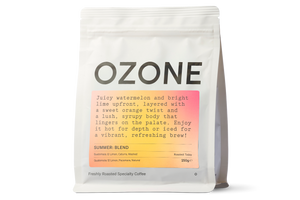 Fruit-forwardand juicy, ourSummerblend isplayful and approachable brewed or as espresso, hot or on ice. This easy-drinking blend iscreatedfromthoughtfully chosennaturalprocessed coffeesthat contribute deep sweetness with watermelon and orange notes and a washedcoffeethat providesrefreshing florals and lime.Behold...your perfectsunnysummer daysbrew.