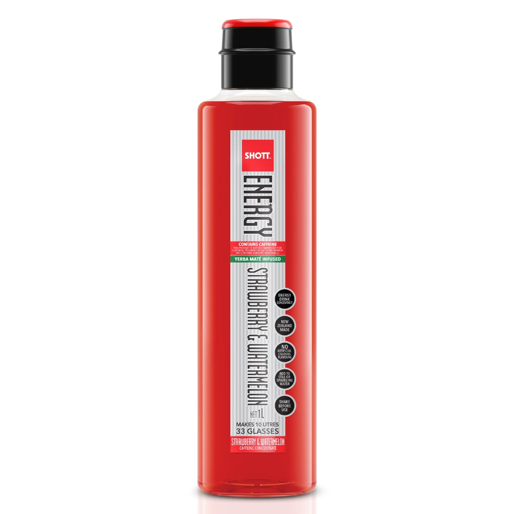 A classic flavour combination for a reason, SHOTT ENERGY Strawberry & Watermelon (Yerba Maté) contains 60mg of caffeine per serve and is enhanced with Yerba Maté to create a delicious sweet, hand-crafted real fruit energy drink to be served over ice with still or sparkling water.